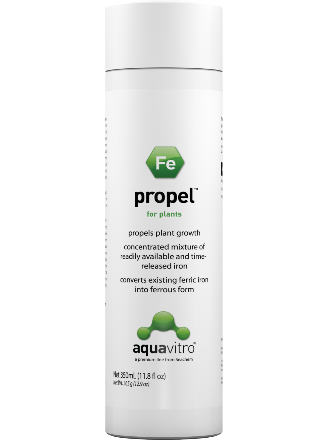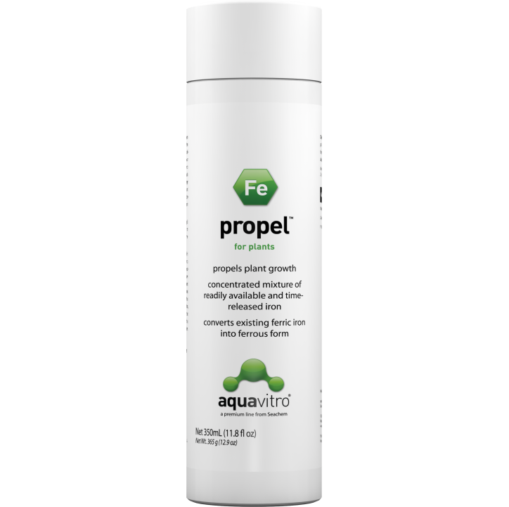 Con AquaVitro Propel 350 mL, tus plantas acuáticas dispondrán del hierro necesario para mantener un color intenso, crecimiento saludable y máxima vitalidad en tu acuario natural.