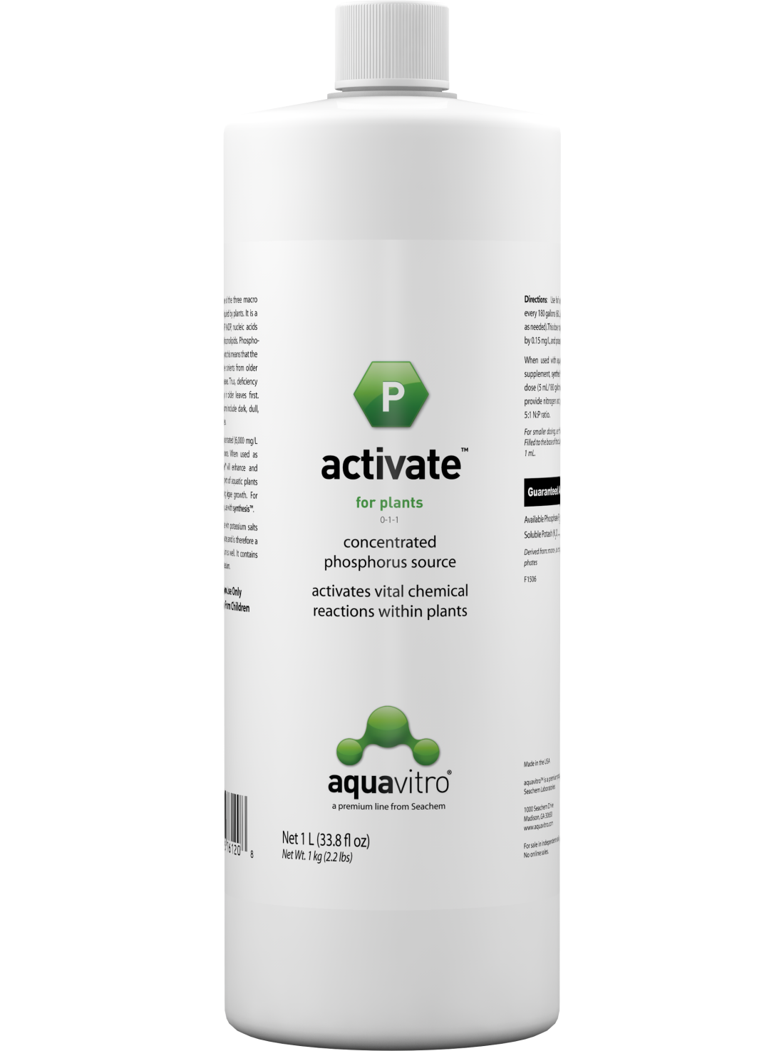 - Para un resultado óptimo, se recomienda combinarlo con Synthesis, el suplemento de nitrógeno de AquaVitro, logrando así una relación equilibrada N:P de 10:1.
