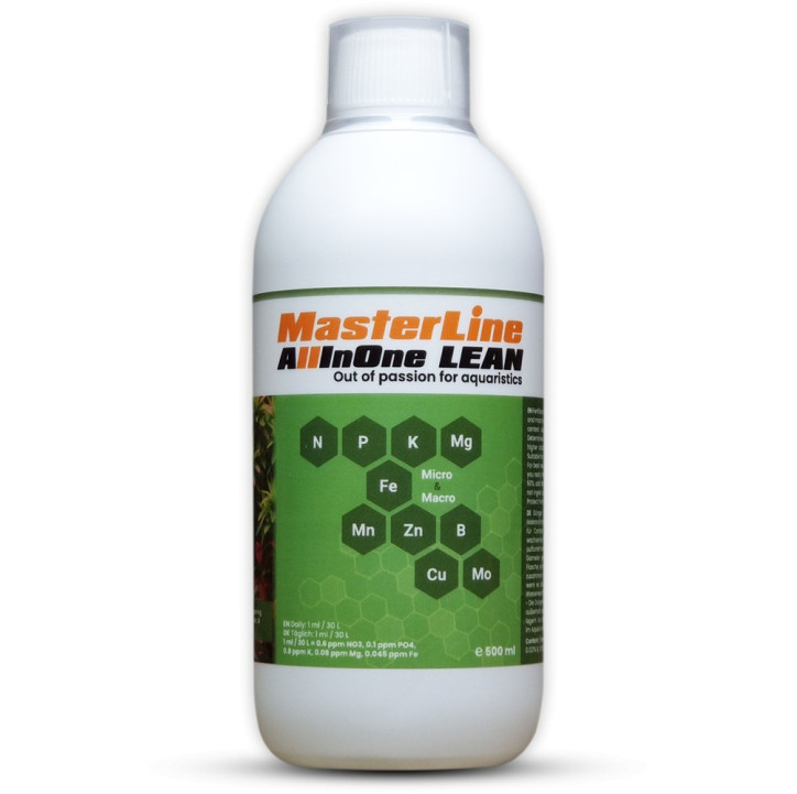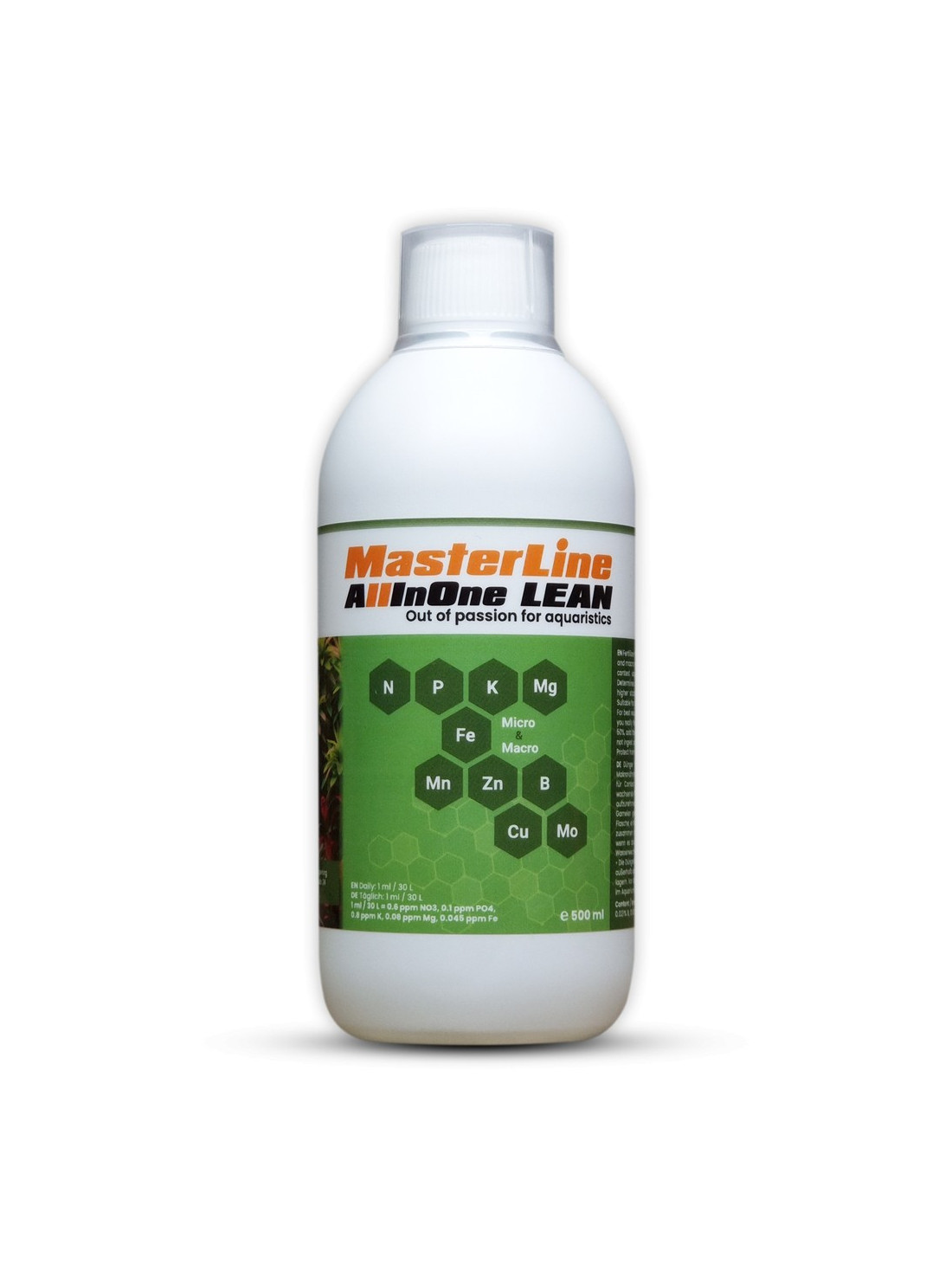 Con MasterLine All In One Lean - 200mL podrás mantener tus plantas acuáticas sanas y coloridas, controlando el crecimiento y asegurando un acuario natural equilibrado.