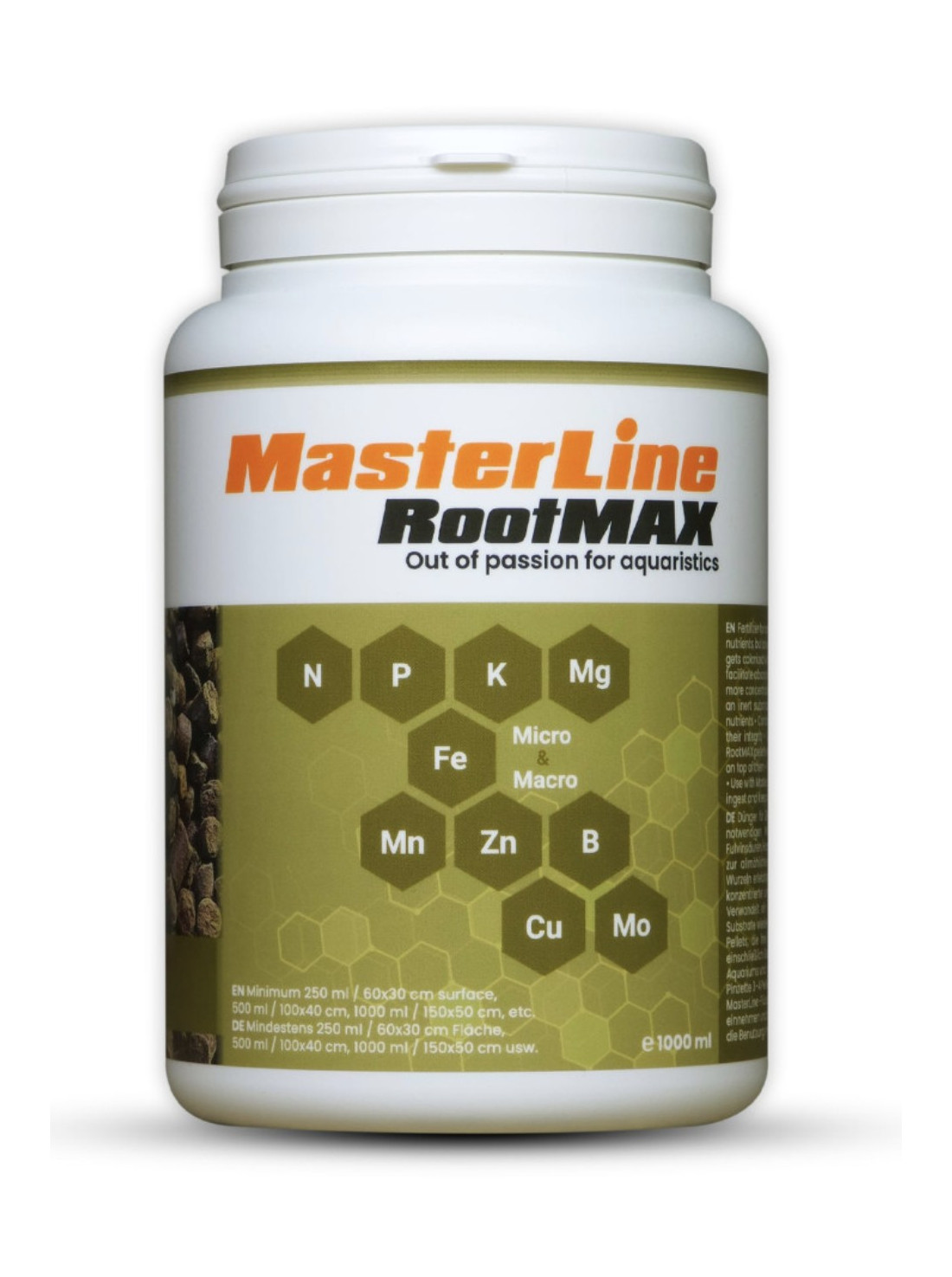 El MasterLine RootMax está diseñado para aquascapers que buscan resultados naturales y duraderos. Su composición orgánica fomenta la actividad microbiana del sustrato y mejora el equilibrio biológico del ecosistema acuático, lo que se traduce en plantas más sanas, verdes y resistentes a largo plazo.
