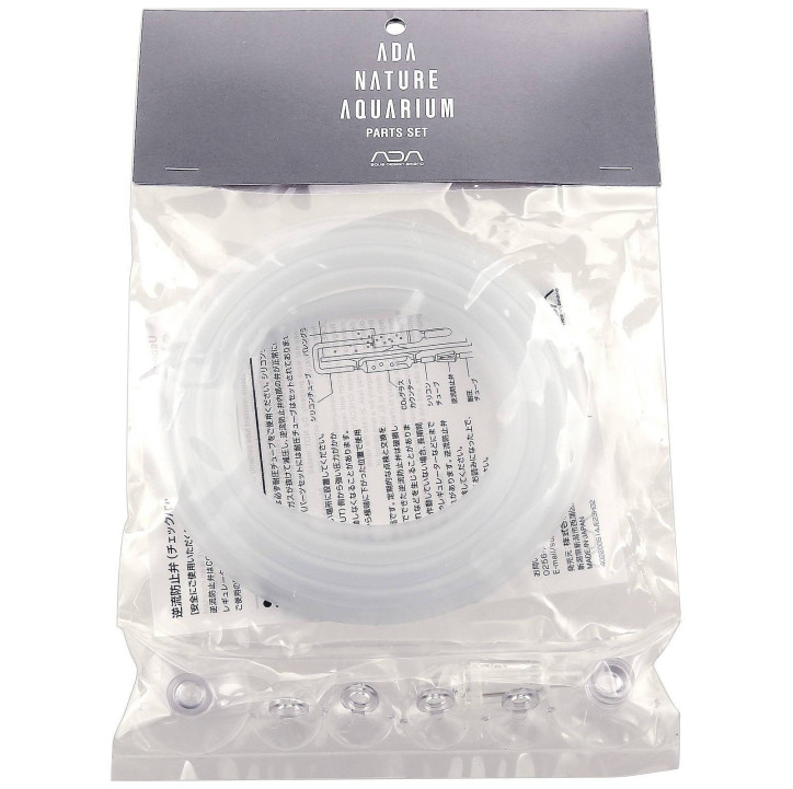 Este set está pensado para su uso con productos de vidrio de ADA (como difusores y contadores de burbujas), ofreciendo una instalación práctica y segura. Se recomienda reemplazar el tubo de silicona y la válvula antirretorno una vez al año, ya que el uso prolongado bajo el agua puede endurecer el material y afectar su rendimiento.