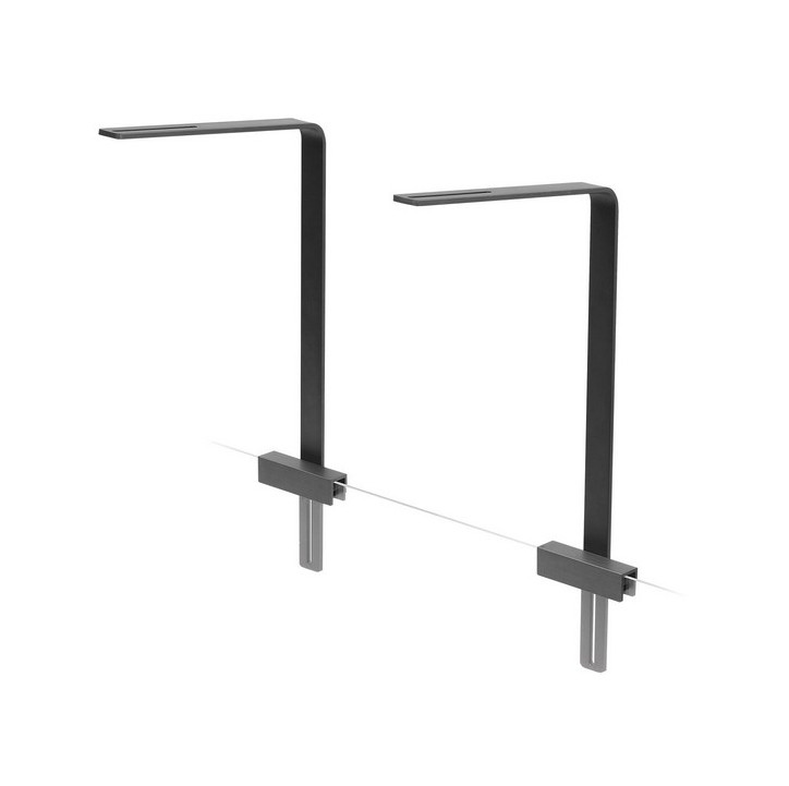 El set incluye dos soportes regulables en altura, permitiendo un ajuste entre 42 cm y 52 cm, lo que ofrece la flexibilidad necesaria para adaptar la iluminación a las necesidades de tus plantas y peces. Sus acoples son válidos para cristales de hasta 20 mm de grosor, garantizando una fijación estable y segura.