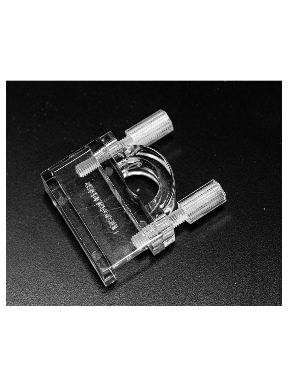 1. Coloque la pieza central del NEO Holder sobre el canto del acuario y fíjela ajustando la varilla roscada.
