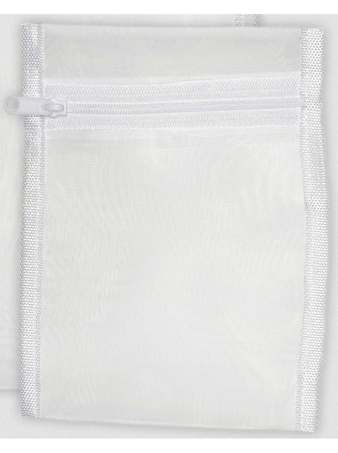 - Bolsa de malla con cremallera resistente para medios filtrantes.