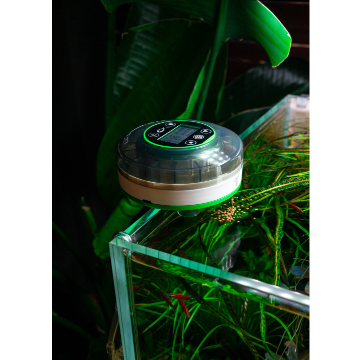 - Su programación avanzada permite ajustar rutinas precisas de alimentación, adaptadas a las necesidades de tus peces.