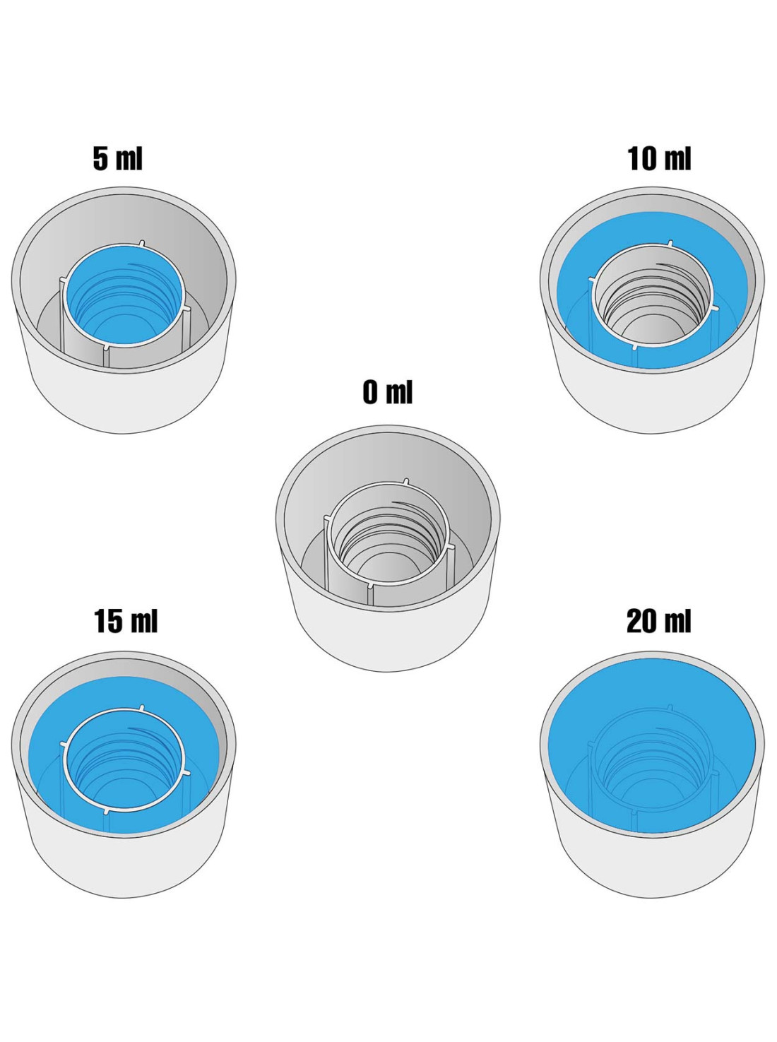 - Envase de 120mL con dosificador práctico (tapón 20mL, interior 5mL).