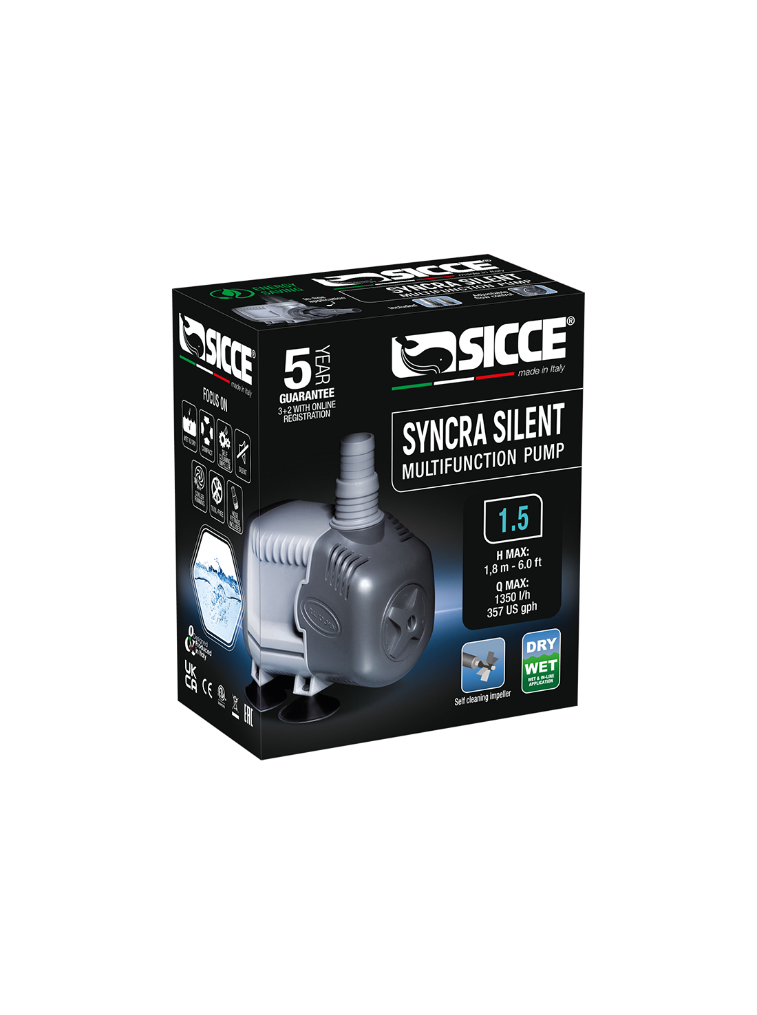 La SICCE Syncra Pump 1.5 forma parte de la reconocida línea Syncra Silent, diseñada para ofrecer máximo rendimiento, funcionamiento ultra silencioso y bajo consumo energético. Gracias a su avanzada tecnología, es una bomba versátil ideal para acuarios de agua dulce y marinos, tortugueras, sistemas de refrigeración, protein skimmers y cualquier aplicación que requiera un flujo de agua constante y eficiente.