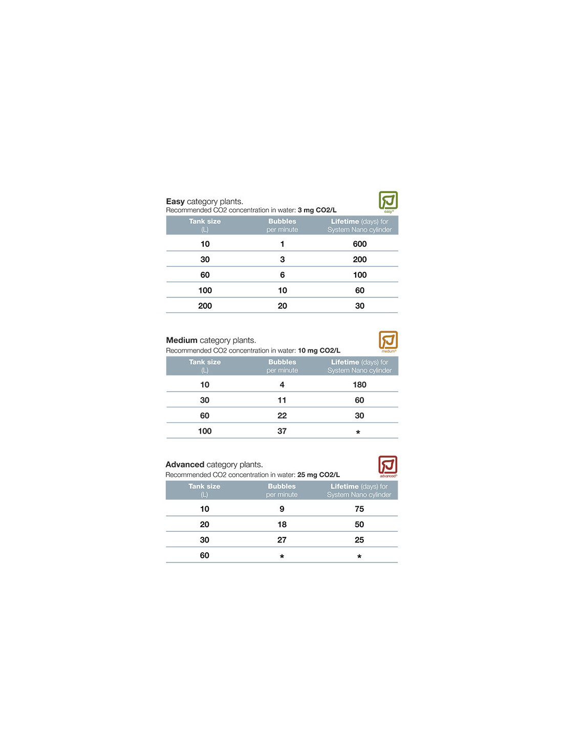 - Aporta CO₂ estable y controlado para acuarios de pequeño tamaño.