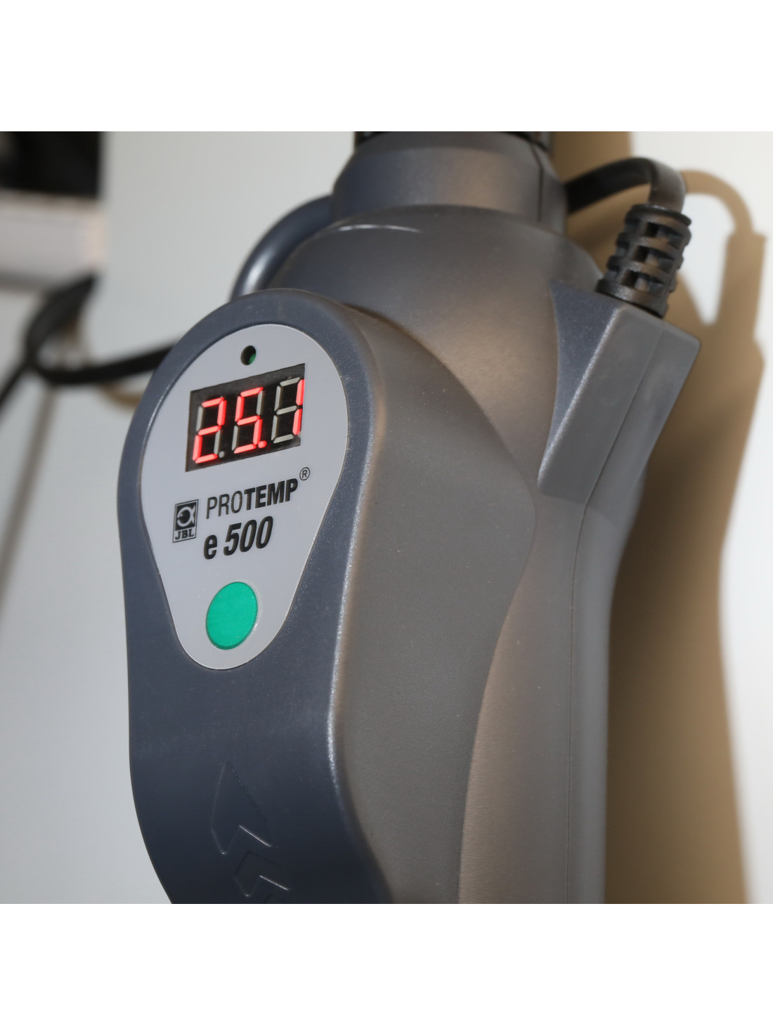 El JBL ProTemp e500 es la solución perfecta para quienes buscan un calentador potente, discreto y eficiente para acuarios medianos y grandes. Con su diseño externo, asegura un entorno estable y saludable para peces y plantas, sin interferir en el diseño natural de tu acuario.