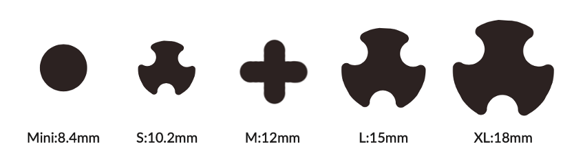 En el pasado, NEOMedia se vendía en dos tallas, M y L, pero desde Septiembre de 2022 ha pasado a ofrecerse en cinco tallas diferentes, Mini, S, M, L y XL con las formas y tamaños de la imagen inferior: