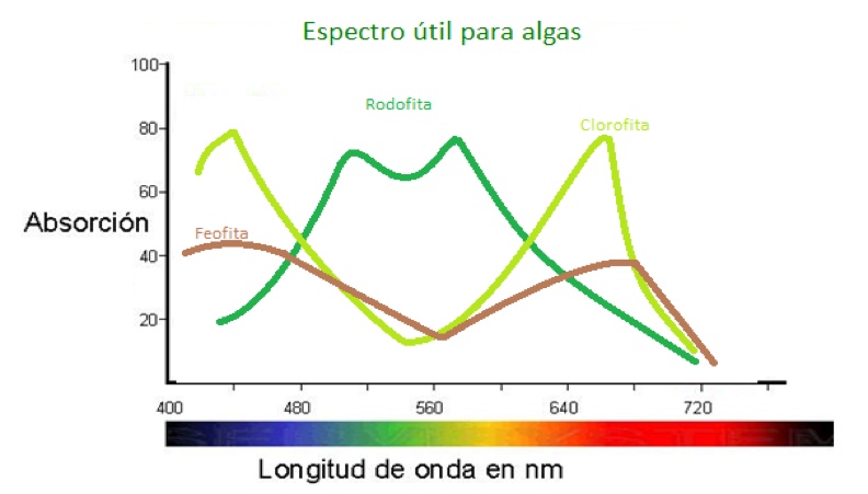 Las algas utilizan espectros de onda diferentes a los de las plantas, por tanto la luz puede ser un gran factor a tener en cuenta en la aparición de algas. (detallamos las mismas más abajo).
