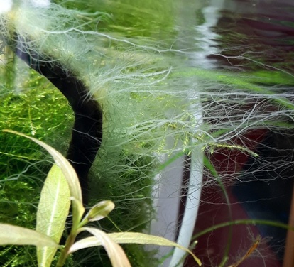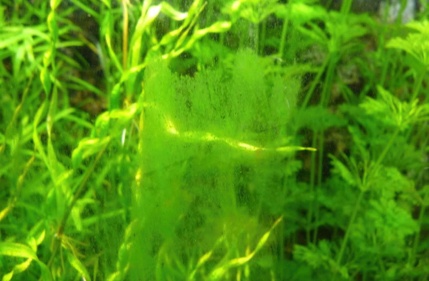 De nuevo al ser un alga tipo hilo nos indica niveles de CO2 bajos o fluctuantes. La fluctuación de dióxido de carbono puede ser causada por niveles desiguales de CO2 (los niveles de CO2 deberán alcanzar el nivel deseado en el momento en que haya luz, incluso luz natural en su habitación). Los hilos finos y largos se unirán a las plantas y a los sólidos.