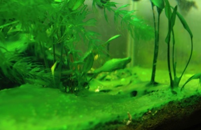 Las cianobacterias son en parte un alga y en parte una bacteria. Crean en nuestros acuarios una película verde azulada con un olor intenso a mar. Aparecen normalmente sobre el sustrato.
