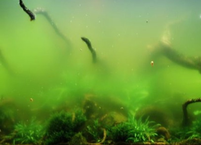 El agua verde es causada por algas flotantes. Puede estar compuesto de múltiples tipos de organismos, desde algas verdes reales como Chlorella hasta flagelados. Cuando aparece, su expansión es muy rápida.