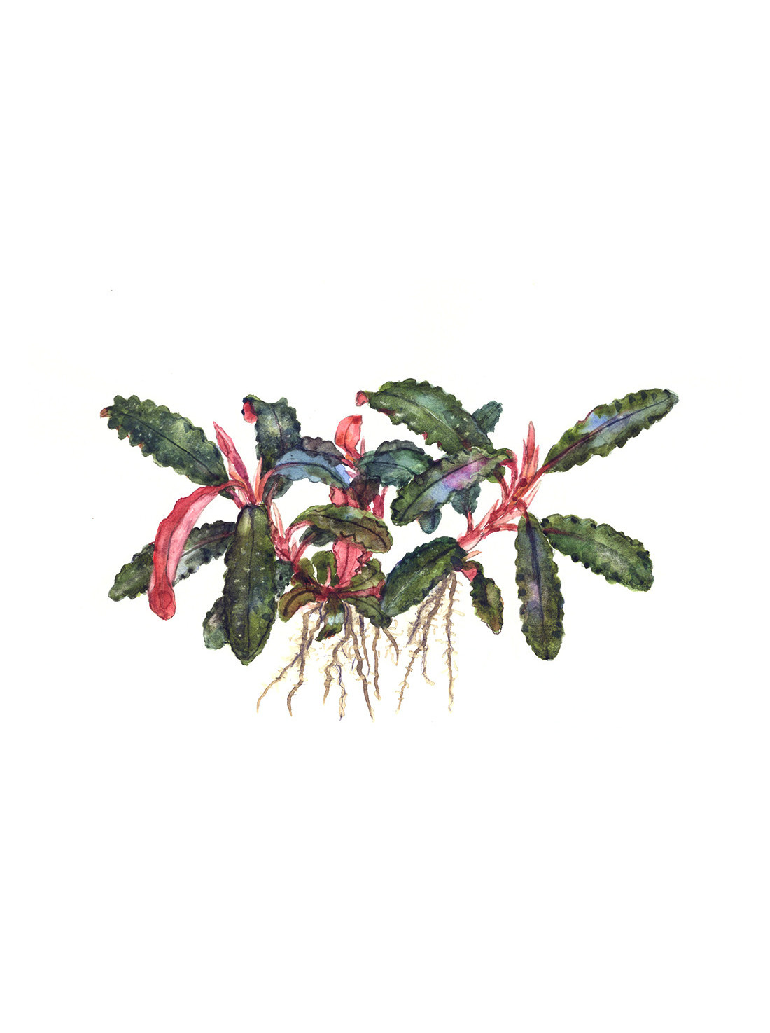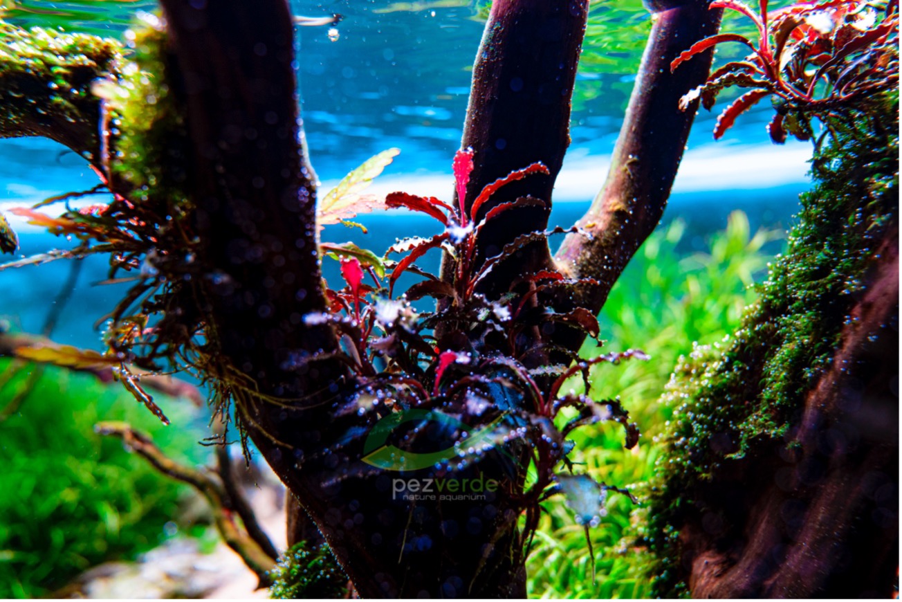 Valoración personal: Es probablemente una de nuestras Bucephalandras preferidas debido a su hoja de pequeño tamaño y a su color intenso con tallo rojizo. En acuarios con gran potencia lumínica preferimos destinarlas a zonas de umbría bajo la sombra de otras plantas para evitar la aparición de punto verde.