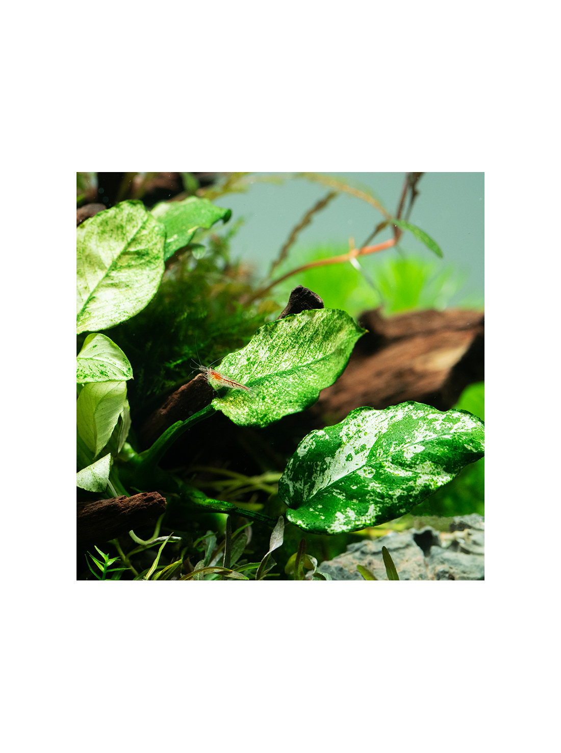 Gracias a su fácil mantenimiento, su longevidad y su particular coloración, la Anubias ‘PINTO’ es ideal tanto para acuarios de exhibición como para nano acuarios, aportando un toque distintivo y natural al diseño.