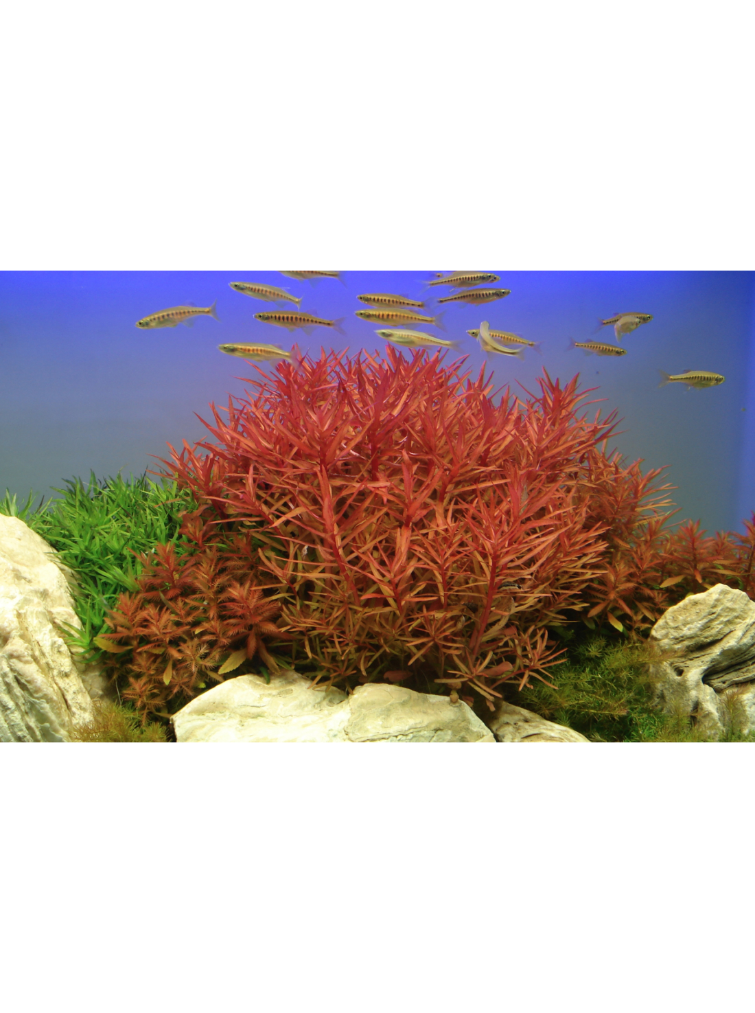 Consejo PezVerde: Combine la Ammannia crassicaulis con plantas verdes de hoja fina, como Rotala rotundifolia o Hygrophila pinnatifida, para lograr un contraste visual equilibrado y natural.