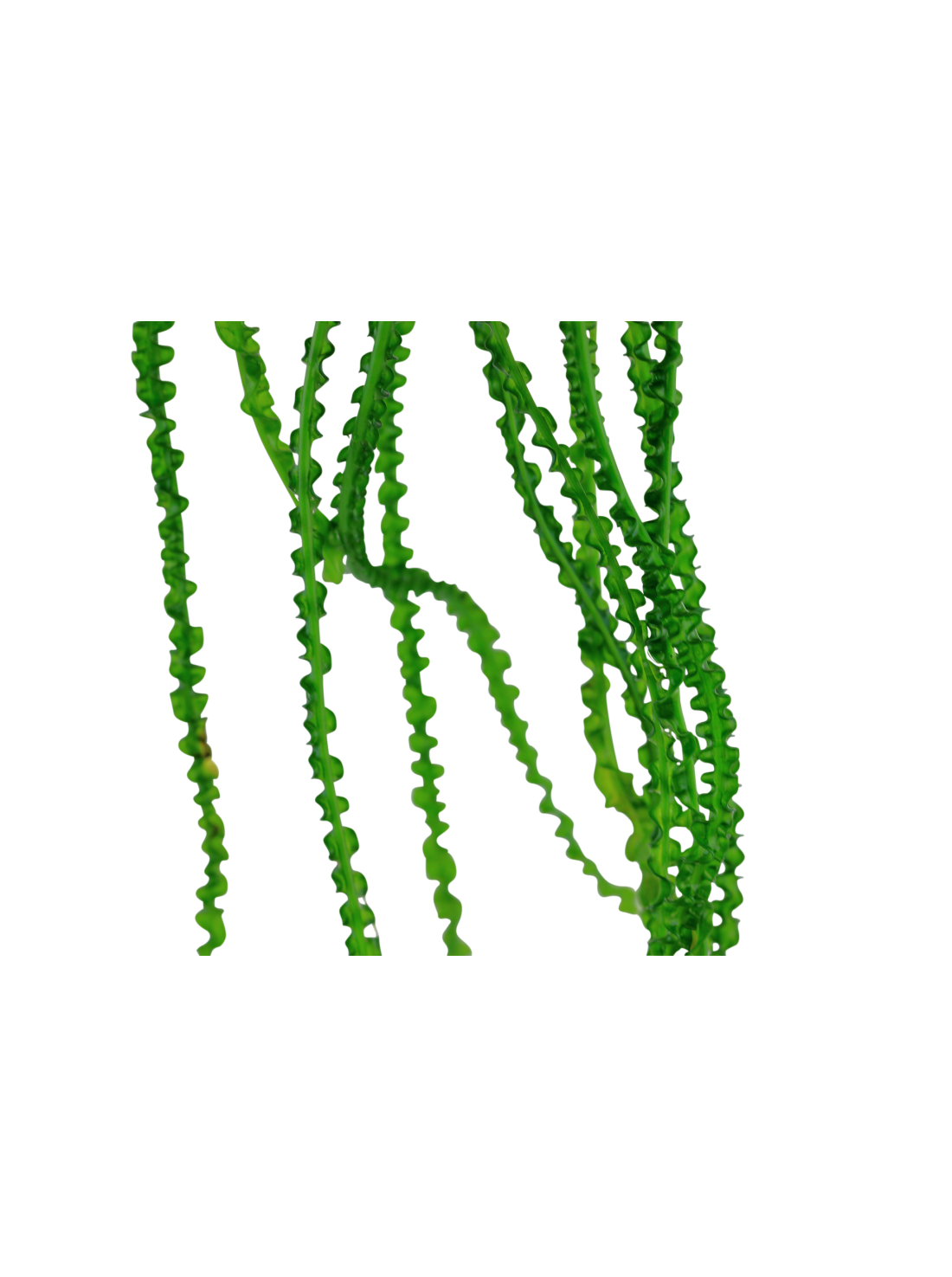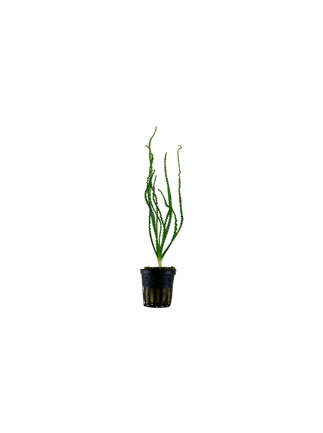 La Crinum calamistratum es una espectacular planta de bulbo originaria de África Occidental, muy valorada en el mundo del aquascaping por su porte elegante y su carácter exótico. Sus largas y estrechas hojas onduladas y rizadas, que pueden alcanzar entre 40 y 120 cm de longitud, aportan dinamismo y movimiento al acuario, creando un efecto natural y llamativo.