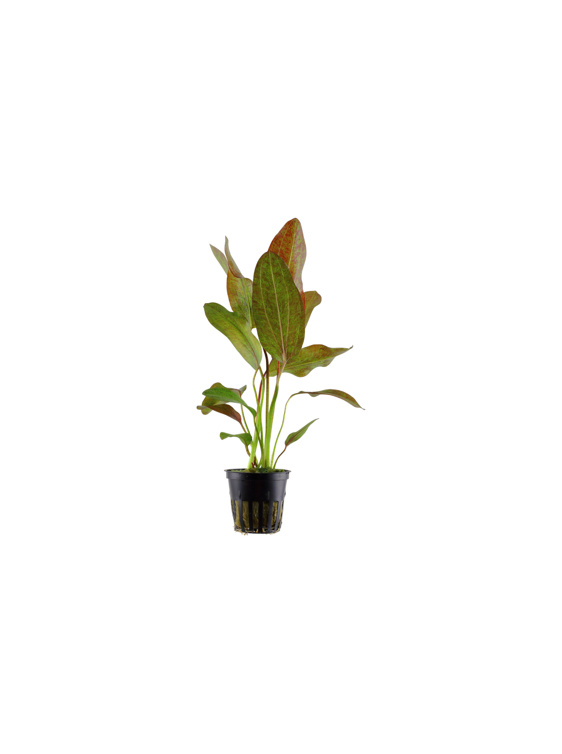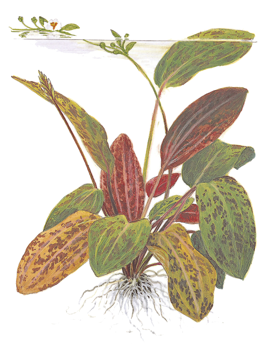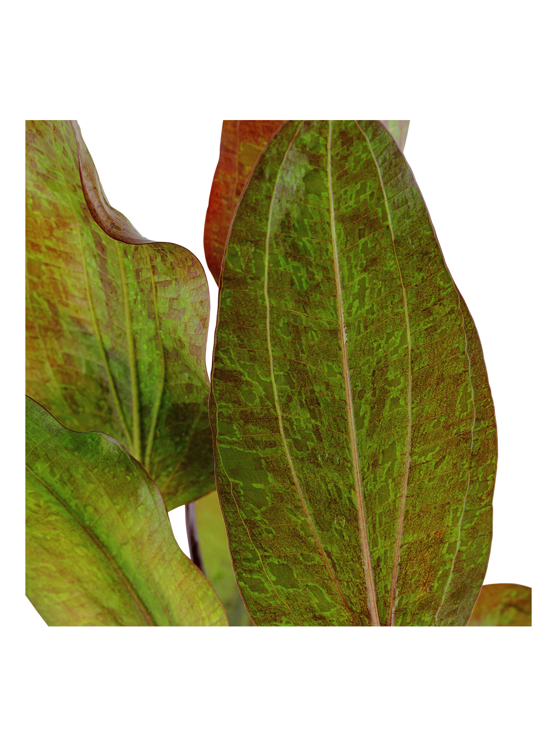 Con una altura de 20 a 50 cm y una roseta de 20 a 40 cm de ancho, la Echinodorus 'Ozelot' se adapta perfectamente a la zona media o trasera del acuario, aportando volumen, color y contraste con otras especies. Sus hojas presentan un diseño moteado característico que le da un aspecto único y ornamental.