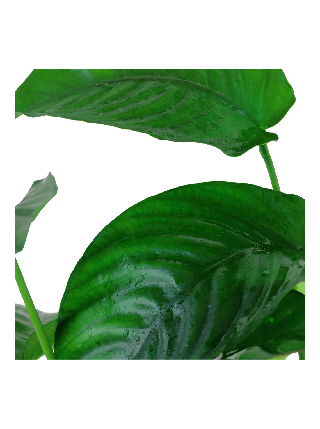 Con una altura aproximada de 15–25+ cm y un crecimiento lento, esta planta puede ocupar grandes espacios gracias a la longevidad de sus hojas, que pueden permanecer sanas durante varios años. Es ideal para acuarios medianos y grandes, aportando un toque elegante y natural al paisaje acuático.