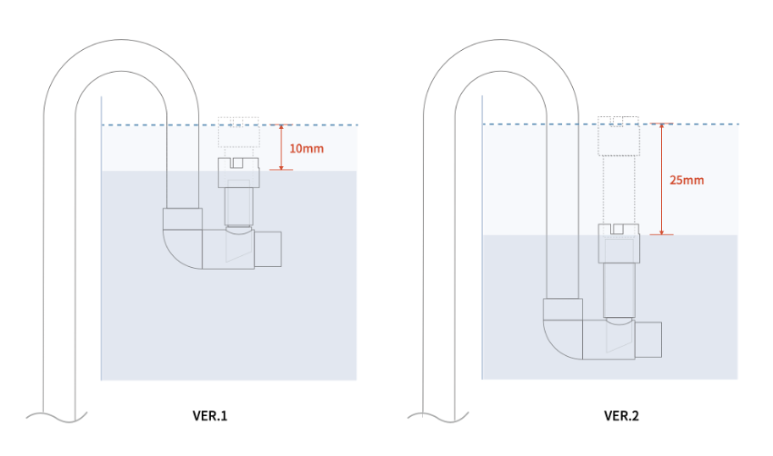 4) El Skimmer tolera variaciones del nivel del agua de hasta 25mm mientras que en la versión 1 a partir de los 10mm dejaba de funcionar.