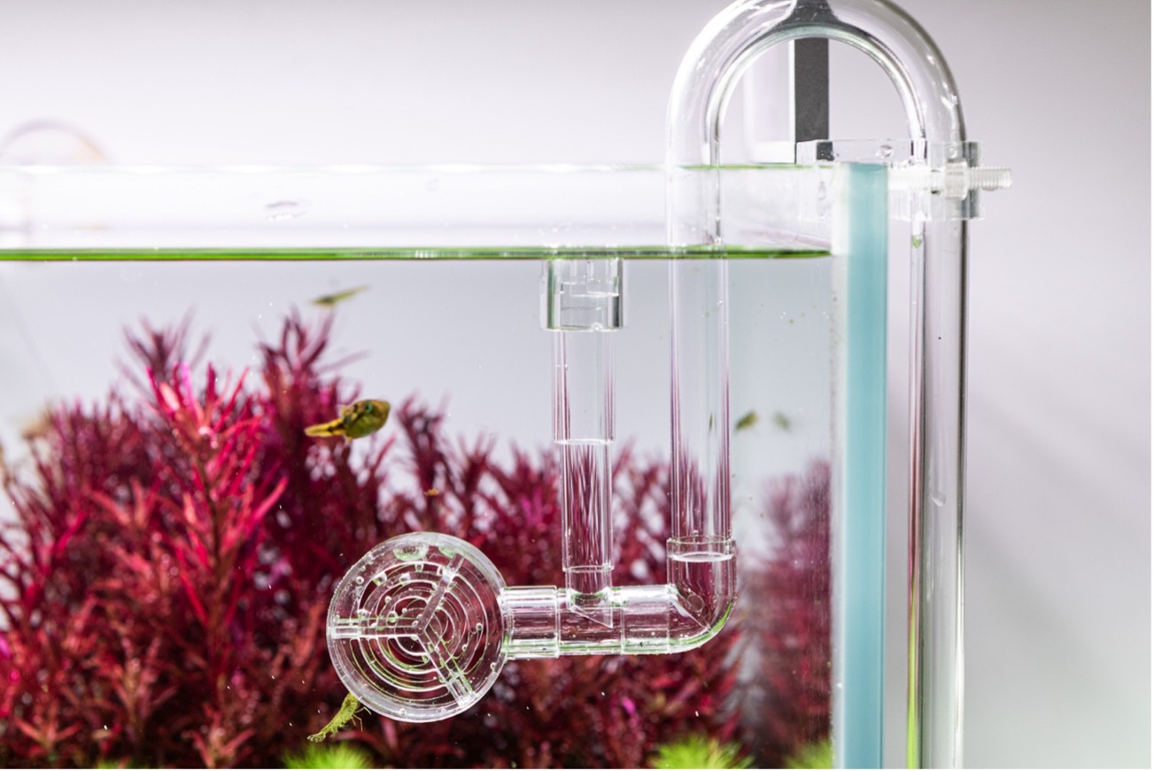 Por último, su pequeño tamaño hace que apenas ocupe espacio dentro del acuario, lo que unido a su diseño en PETG transparente hace que se integre de forma muy estética en el conjunto de la urna pasando completamente desapercibido.