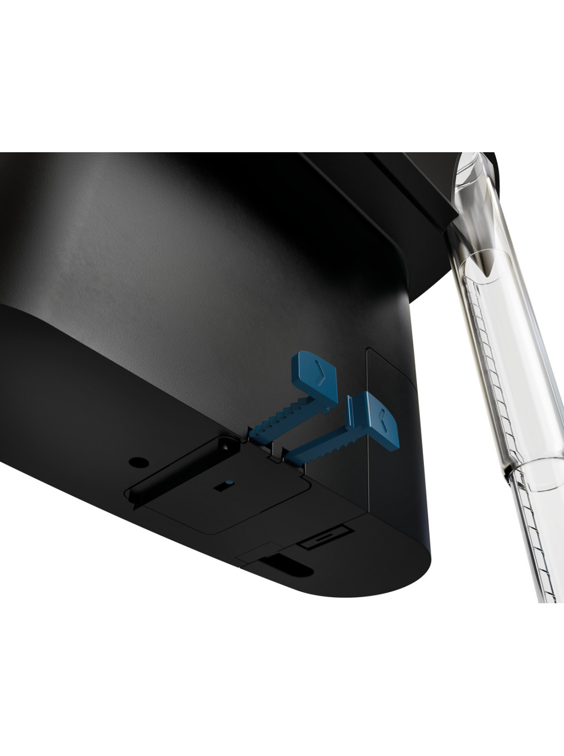 - Adaptabilidad: pestaña inferior orientable para diferentes grosores de vidrio y tubo de aspiración ajustable en altura.