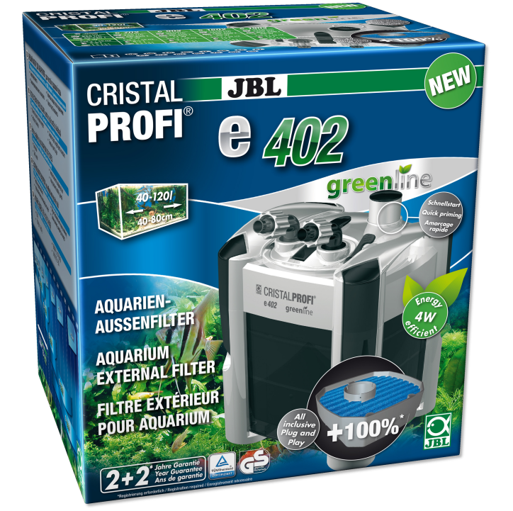 El JBL CristalProfi E-402 es la elección ideal para quienes buscan un filtro externo compacto, fiable y de bajo consumo, que garantice un agua cristalina y un entorno saludable para peces, invertebrados y plantas.