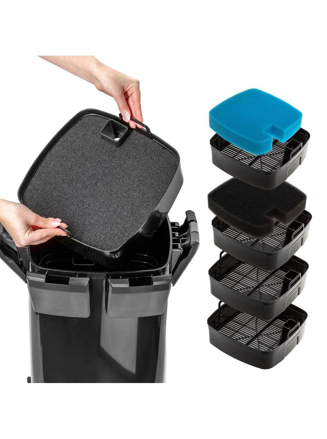 Rendimiento: Los filtros HyperMAX destacan por su gran caudal de agua, concretamente este modelo mueve hasta 4500 litros a la hora. Además, cuentan con una gran capacidad interna para albergar material biológico lo que permitirá mantener una buena colonia bacteriana que tenga a raya los compuestos nitrogenados.