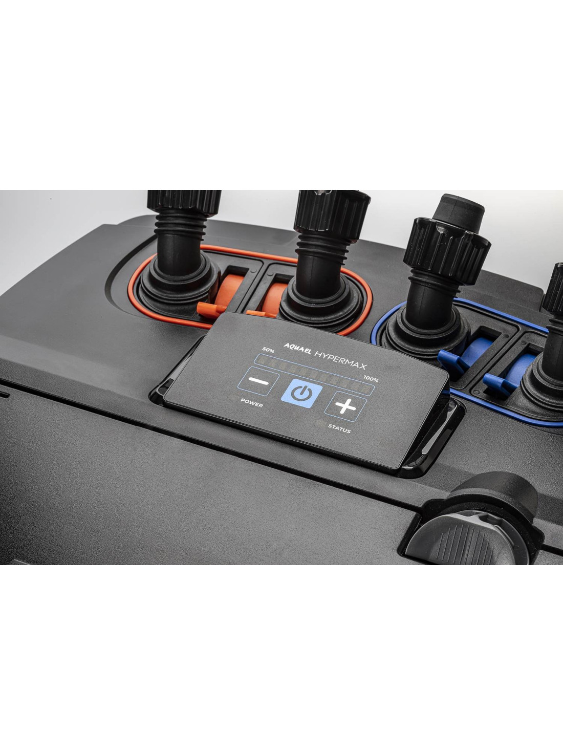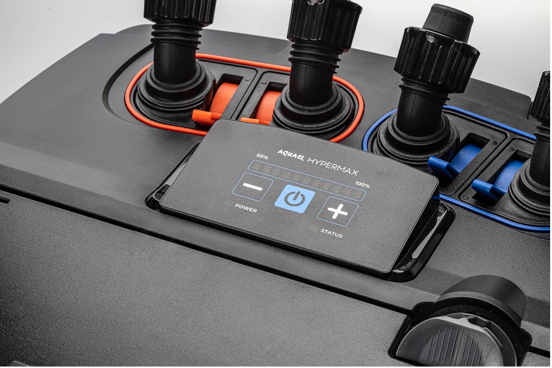 Control electrónico de la bomba: El HyperMAX 4500 cuenta con un controlador electrónico que permite regular la potencia de la bomba pudiendo aumentar o reducir el caudal a necesidad. Además se puede visualizar la potencia a cada momento en el display integrado en su cabezal. Gracias a este sistema por ejemplo podrá reducir el caudal a la hora de alimentar a sus peces para que estos coman con mayor confort.