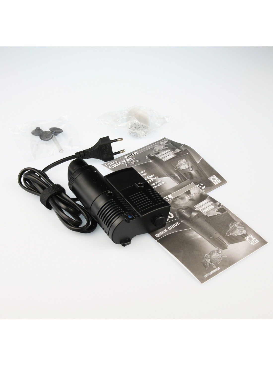 El JBL ProCristal i30 se entrega listo para usar, incluyendo esponja filtrante, cartucho de carbón activo, boquillas de succión, 3 ventosas y cable de 150 cm, para una instalación inmediata y sin complicaciones.