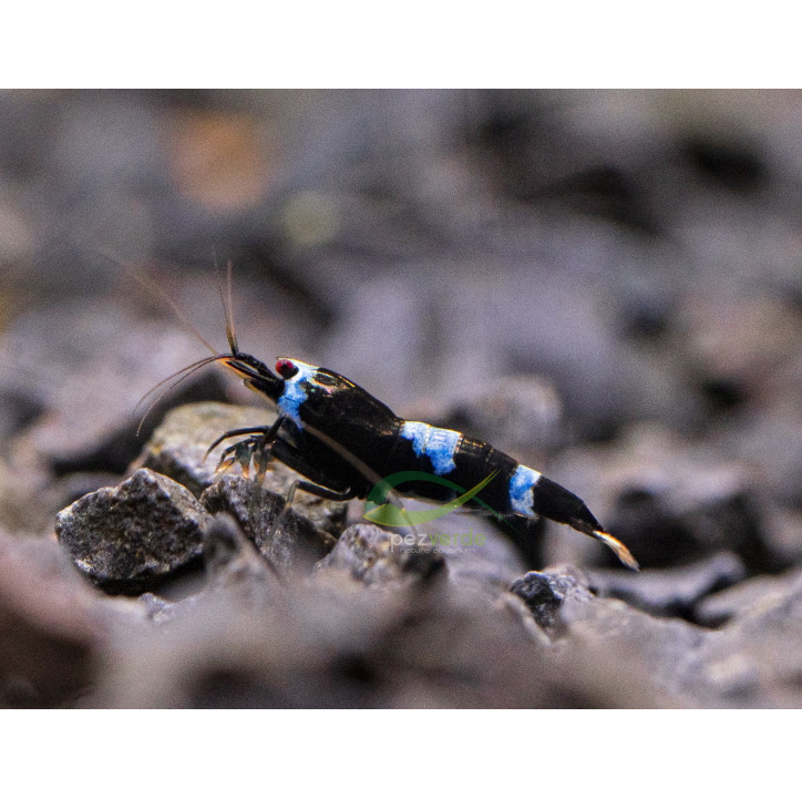 Las Taiwan Bee Blue Panda son una de las variedades de Caridina más apreciadas por los aficionados debido a la belleza de su patrón de coloración.