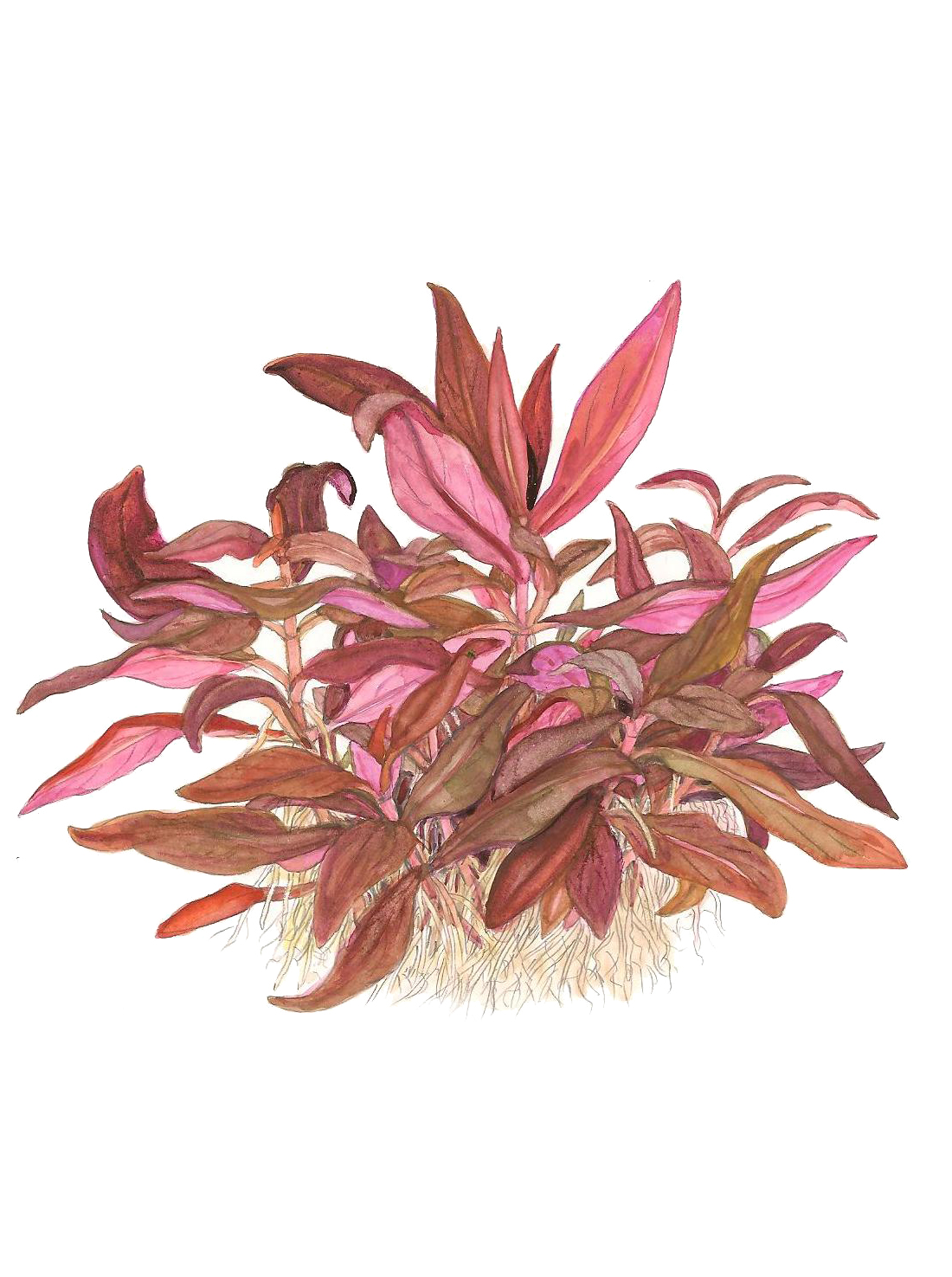 Con los cuidados adecuados, esta planta aporta un contraste espectacular frente a las tonalidades verdes, creando puntos focales llamativos en el diseño del acuario. Para obtener su mejor desarrollo y colores más vivos, se recomienda proporcionarle alta intensidad lumínica y un aporte estable de CO₂, además de una correcta fertilización líquida.