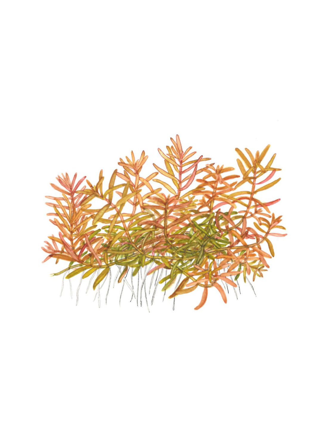 Resulta una planta de acuario increíble para crear macizos densos a distintas alturas. Es especialmente interesante combinarla con sus hermanas Rotundifolia (Naranja-Amarilla) y Green (Verde) para jugar con colores degradados o mezcladas unas con otras en macizos.