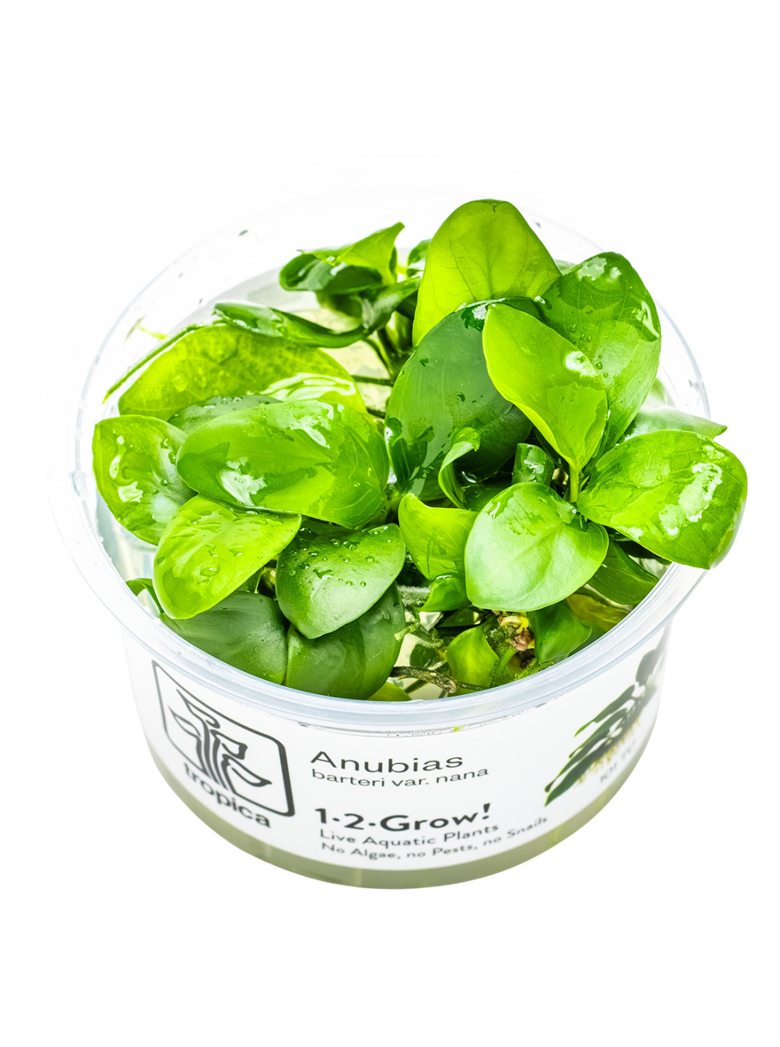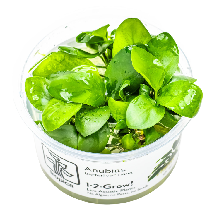Agua: La Anubia 'Nana' es una planta muy tolerante en lo que a parámetros del agua se refiere si bien nosotros recomendamos un pH de entre 5,5 y 8. En tienda solemos mantenerla a pH 6,8 KH 2 y GH 4.