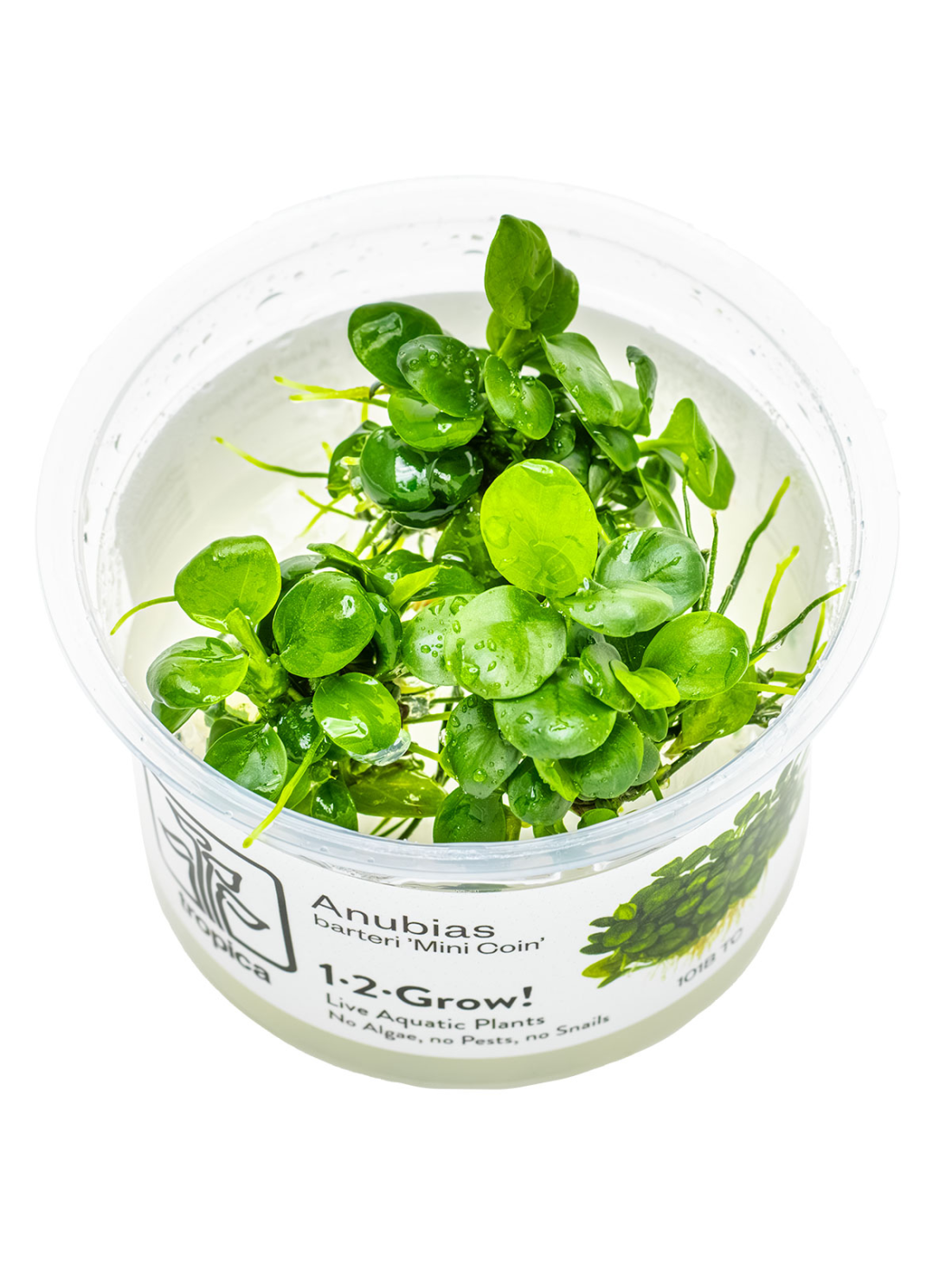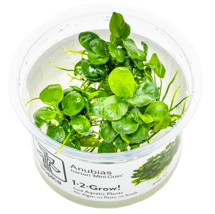 Agua: La Anubia 'Mini Coin' es una planta muy tolerante en lo que a parámetros del agua se refiere si bien nosotros recomendamos un pH de entre 5,5 y 8. En tienda solemos mantenerla a pH 6,8 KH 2 y GH 4.
