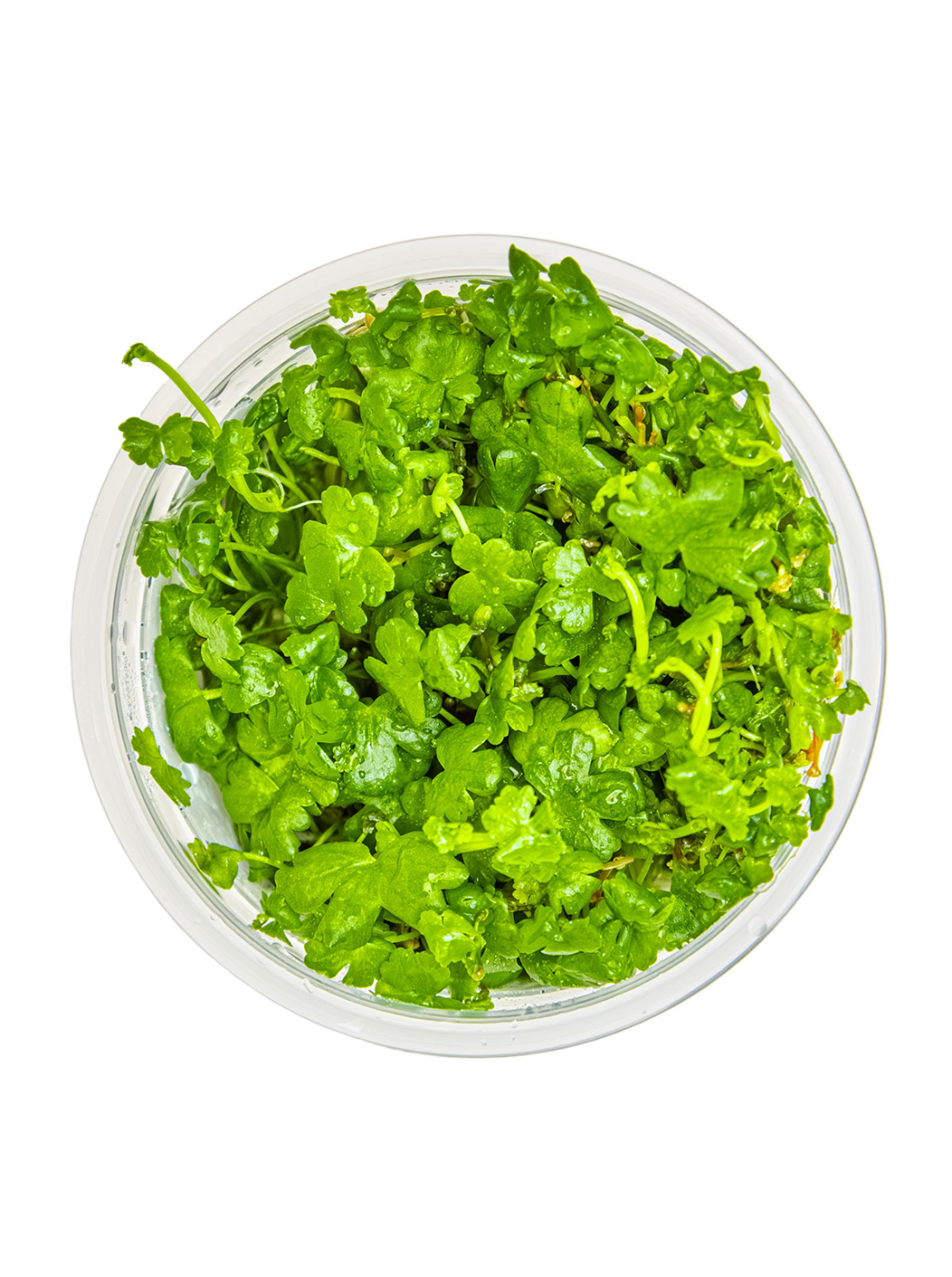 Dimensiones: Es una planta de comportamiento rastrero por lo que la altura sobre el suelo rara vez supera los 6cm aunque puede trepar por los sólidos del acuario alcanzando entonces alturas superiores.