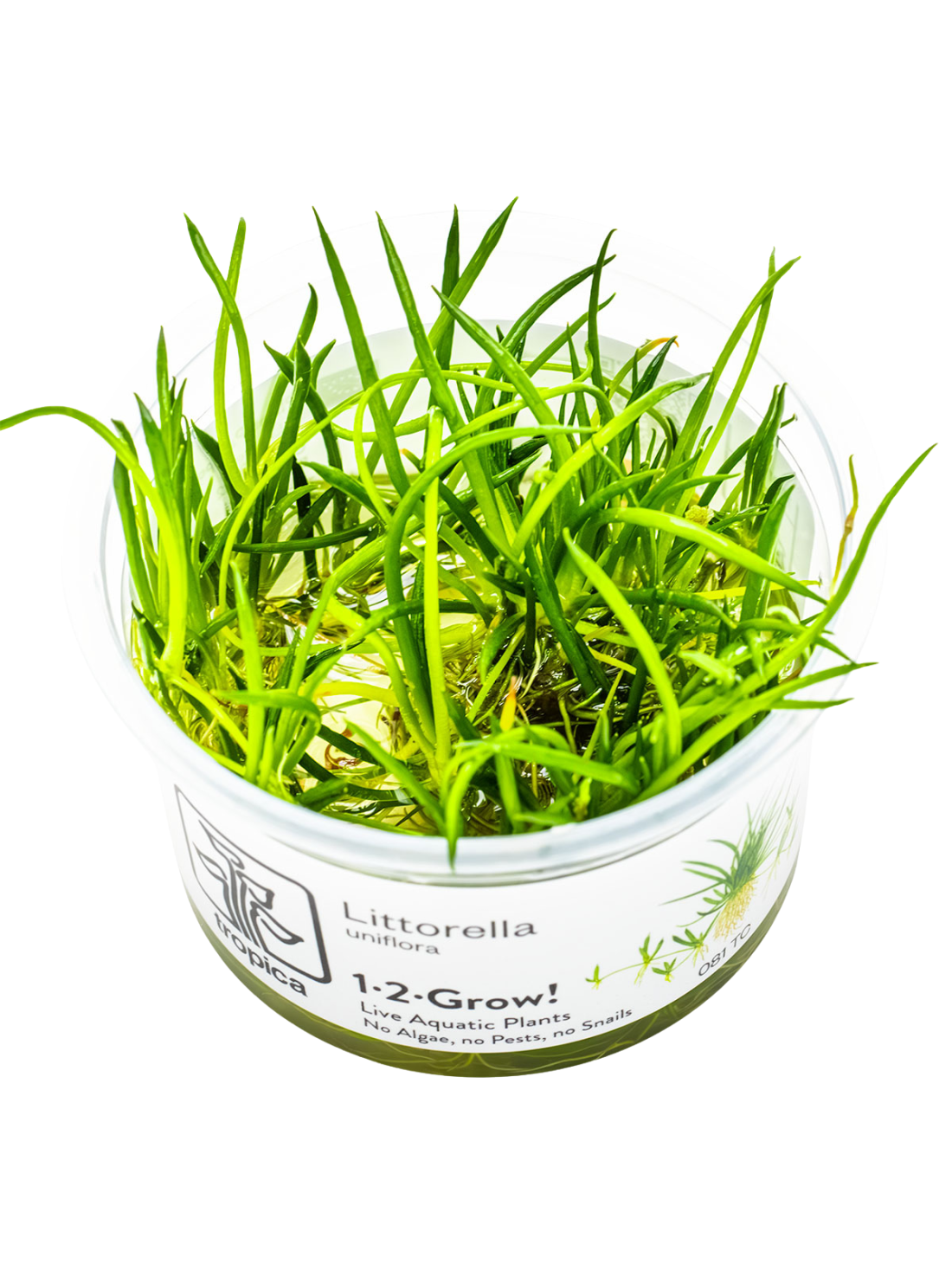 Dimensiones: Hemos mantenido la Littorella uniflora en alturas que van desde los 3cm hasta los 7cm. Destaca por la carnosidad de sus hojas cilíndricas.