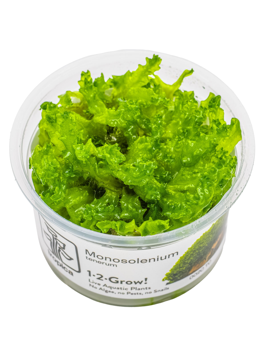 El formato In-Vitro 1-2-Grow! de Tropica Dinamarca garantiza que recibirás una planta completamente libre de algas, caracoles y pesticidas, lista para una aclimatación rápida y segura en tu acuario.