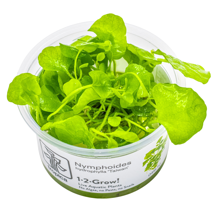 La Nymphoides hydrophylla 'Taiwan' es una planta acuática originaria de Asia, muy apreciada por su intenso color verde claro y transparente, que aporta luminosidad y frescura a cualquier acuario natural. Gracias a su rápido crecimiento, es una especie ideal para quienes buscan resultados visibles en poco tiempo.