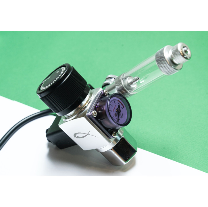La válvula solenoide de este manorreductor funciona a 12V, lo que evita sobrecalentamientos y prolonga su vida útil frente a modelos convencionales. Se conecta fácilmente a un temporizador externo, lo que permite encender y apagar el suministro de CO₂ de forma sincronizada con el fotoperiodo de la pantalla LED del acuario.
