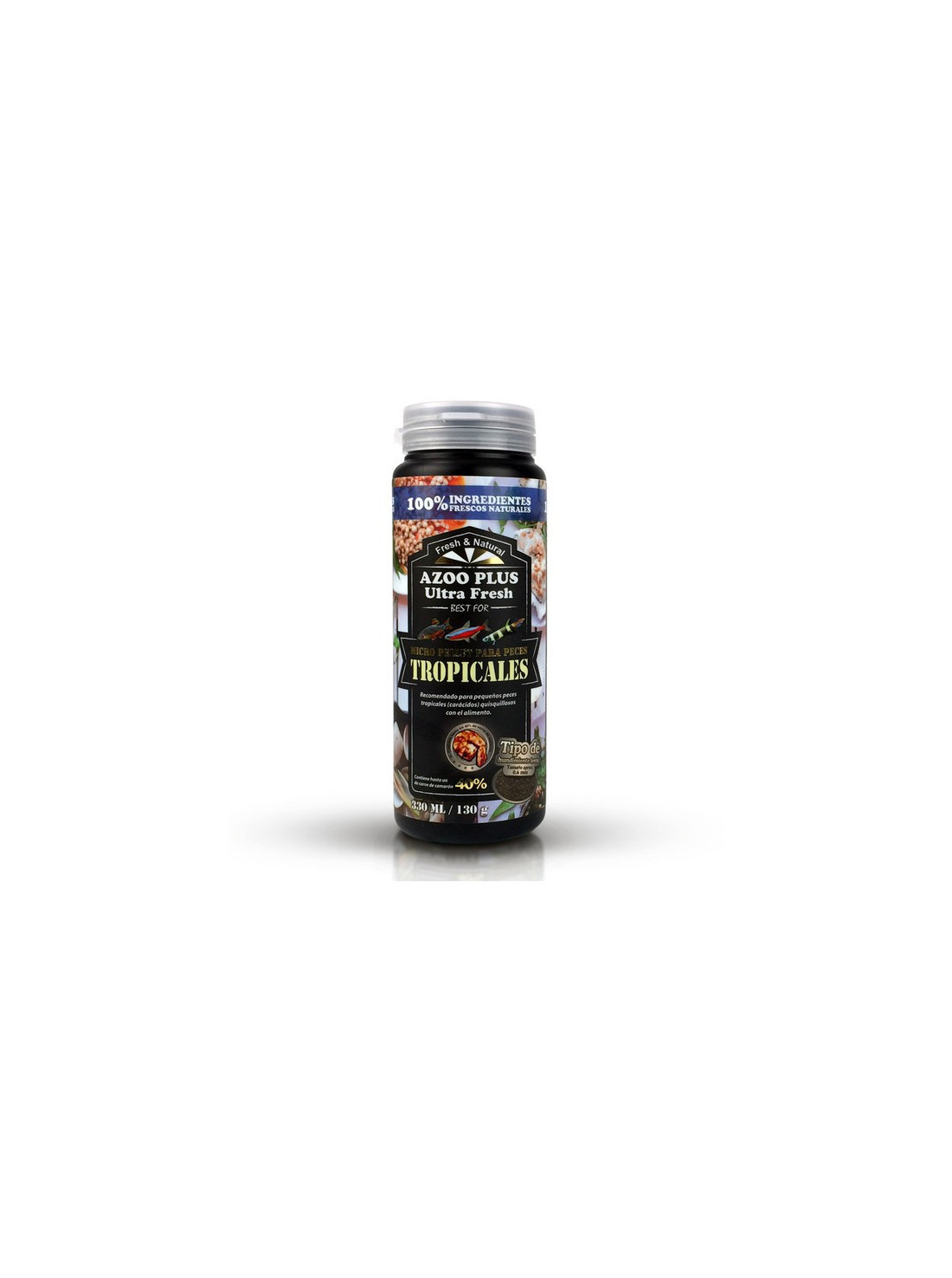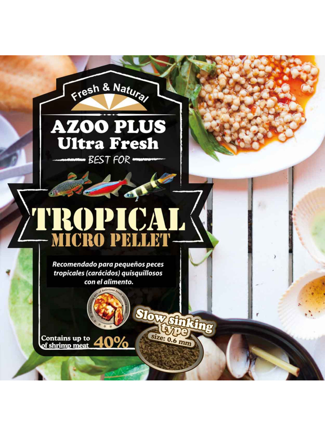 - Micro-pellet de 0,6 mm con hundimiento lento, ideal para peces de cardumen y comunitarios.