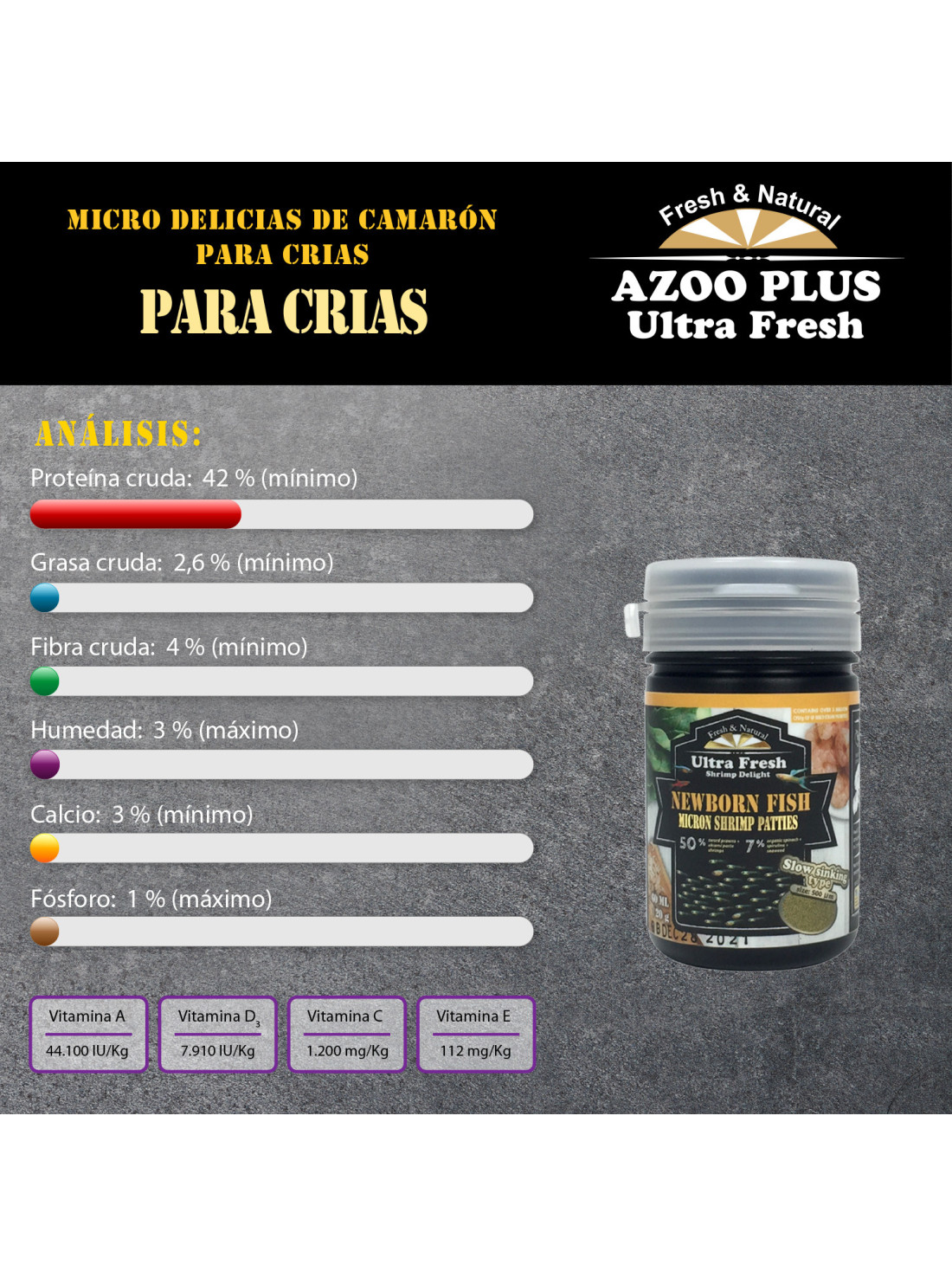 - Alimento específico para peces recién nacidos y de pequeño tamaño.