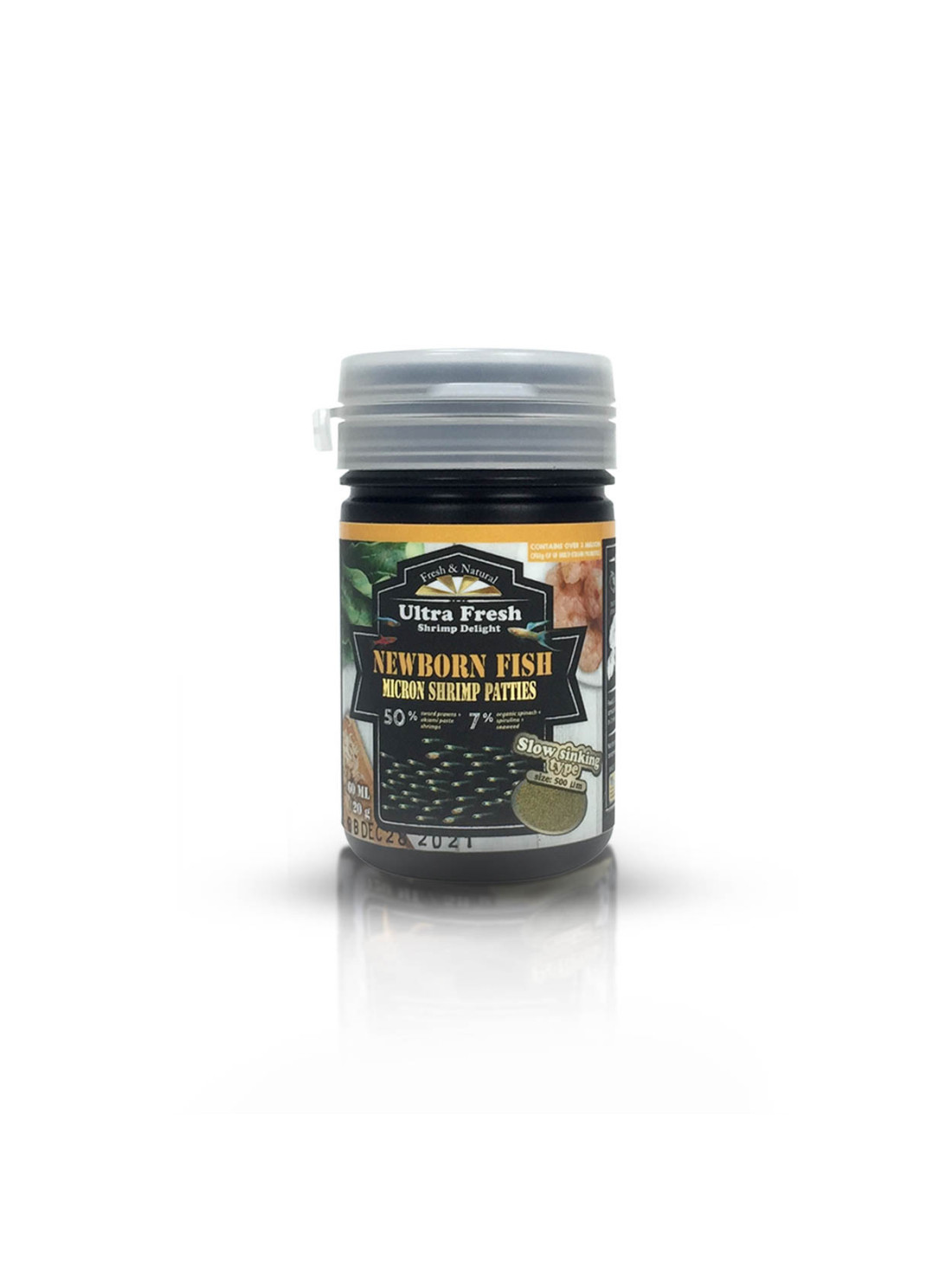 - Micropartículas de 500 μm de hundimiento lento, fáciles de ingerir y seguras para peces pequeños.