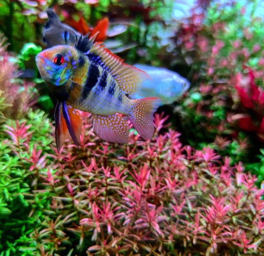 Comportamiento y Compatibilidad: El ramirezi probablemente no sea el candidato ideal para un comunitario en términos generales ya que requiere un agua de gran calidad y pueden presentar problemas de comportamiento con ciertas especies.