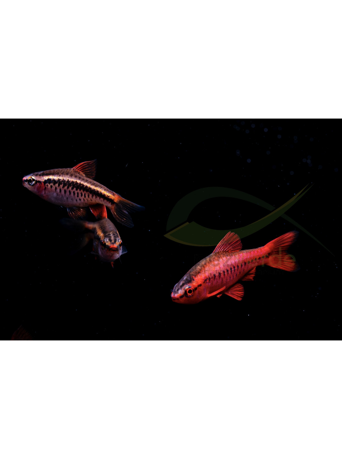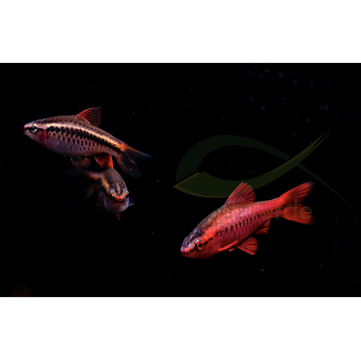 Reproducción: Como en la mayoría de ciprínidos, el barbo cereza es un reproductor que esparce los huevos libremente de forma que los padres no los cuidan.