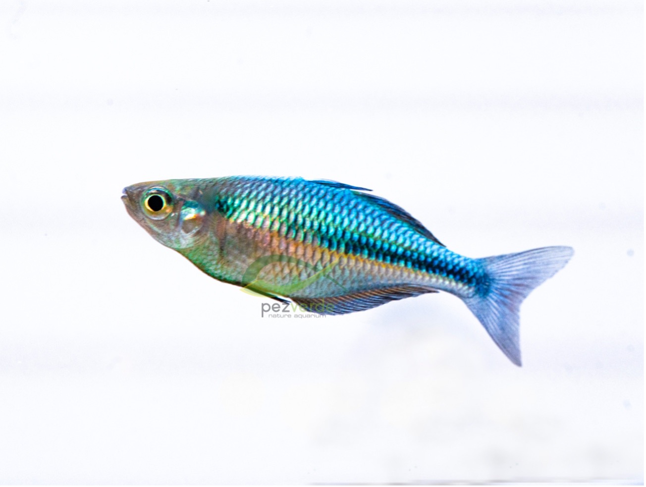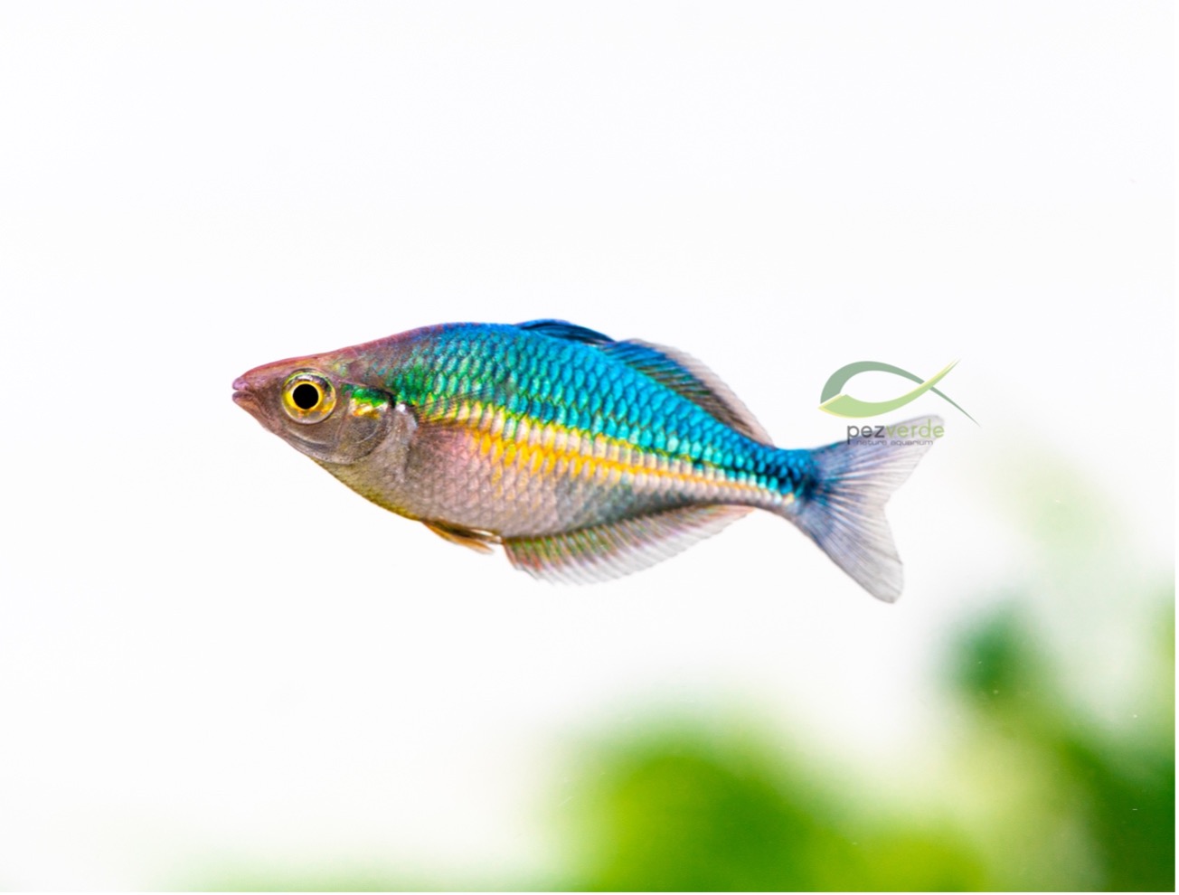 Comportamiento y Compatibilidad: Aunque el temperamento de las Melanotaenias es muy pacífico puede llegar a molestar o incomodar a otros habitantes del acuario debido a sus movimientos rápidos y bruscos a lo largo del acuario. Compatibilizan bien con otras variedades de Peces Arcoiris, con Carácidos y en general con cualquier pez pacífico de tamaño y parámetros similares.