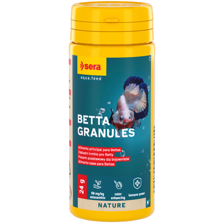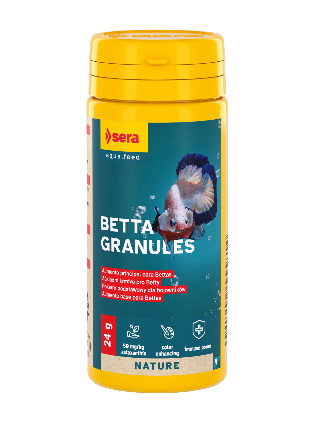 La SERA Betta Granules 50mL es la elección perfecta si quieres mantener a tus Betta sanos, activos y con colores vibrantes. Un alimento natural, nutritivo y de máxima calidad para el cuidado diario de tus peces.