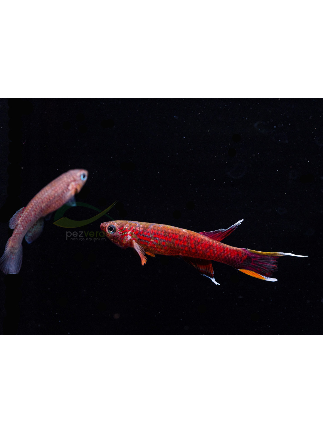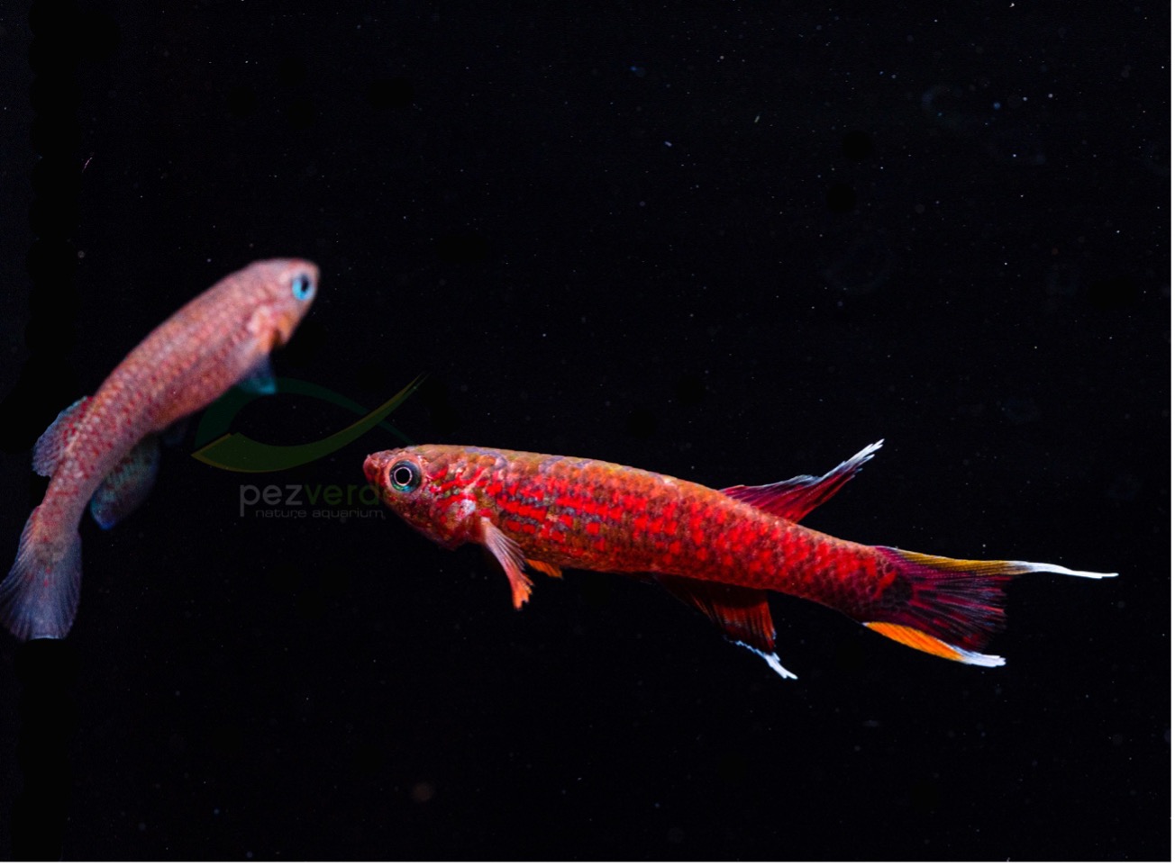 Reproducción: Una pareja puede desovar fácilmente en un acuario de apenas 30 x 20 x 20 cm. Aunque se recomienda a menudo el desove en tríos, el tamaño de las camadas tiende a ser menor en este caso, posiblemente porque el pez que no participa en el desove tiende a comerse algunos de los huevos.