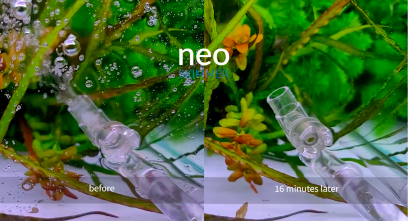 Por ello la marca aprovechando que la pipa es facilmente cortable recomienda cortar el lado largo de la pipa de salida a 11cm y acoplar ahí el NeoSkimmer INVINCIBLE, dejando el lado de 8cm fuera del acuario enganchado a la manguera.